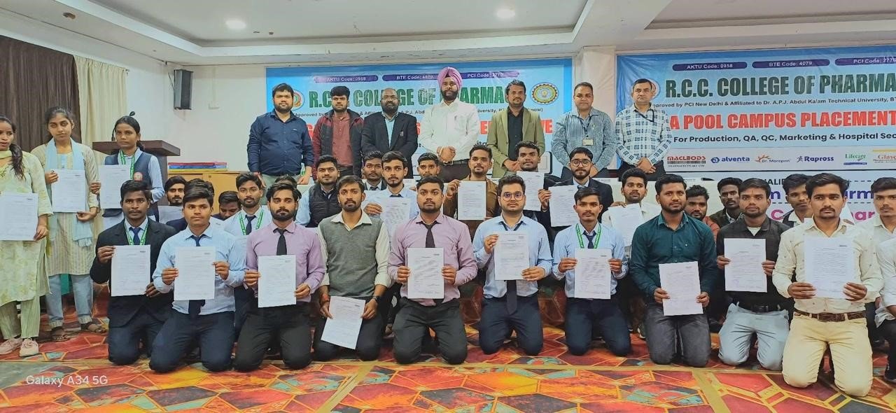 बस्ती जिले के आरसीसी कॉलेज ऑफ फार्मेसी मंगलवार को में मैकलियोड्स फार्मास्युटिकल्स के तत्वावधान में पूल कैंपस प्लेसमेंट ड्राइव का सफल आयोजन किया गया। इस अवसर पर लगभग 200 से अधिक छात्रों ने उत्साहपूर्वक प्रतिभाग किया, जिनमें से 36 छात्रों का चयन विभिन्न पदों के लिए किया गया।