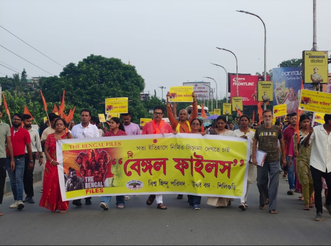 अशोक झा/ सिलीगुड़ी: बंगाल में ‘द बंगाल फाइल्स’ को दर्शकों तक पहुंचने से रोका जा रहा है, जिससे न सिर्फ दर्शकों का अधिकार प्रभावित हो रहा है, बल्कि निर्माता और वितरक भी डर और दबाव का सामना कर रहे हैं। इसको लेकर सिलीगुड़ी में विश्व हिंदू परिषद की ओर से विरोध प्रदर्शन किया गया। राज्यपाल को एसडीओ के माध्यम से मांगपत्र सौंपा गया। विश्व हिन्दू परिषद उत्तर बंगाल की ओर से प्रदेश सचिव लक्ष्मण बंसल ने कहा कि हम अत्यंत सम्मानपूर्वक इस तथ्य के विरुद्ध अपना कड़ा विरोध व्यक्त करते हैं कि पश्चिम बंगाल के लोगों को निर्देशक विवेक अग्निहोत्री की हाल ही में रिलीज़ हुई फिल्म “द बंगाल फाइल्स”, जो केंद्रीय फिल्म प्रमाणन बोर्ड द्वारा विधिवत प्रमाणित है, देखने के अधिकार से वंचित कर दिया गया है। यह फिल्म अगस्त 1946 में कलकत्ता में हुई भयावह घटनाओं, प्रत्यक्ष कार्रवाई दिवस, जब मुस्लिम लीग के आह्वान पर बड़े पैमाने पर सांप्रदायिक हिंसा और हिंदू नरसंहार हुआ था, नोआखली की क्रूरता और अत्याचारों, और विभाजन के गहरे घावों को सच्चाई से दर्शाती है जिसने लाखों लोगों को आघात पहुँचाया। केवल इसलिए कि यह फिल्म हिंदू नरसंहार और पीड़ा की लंबे समय से दबी हुई कहानी को बयान करती है, और मुसलमानों द्वारा की गई क्रूरता और उत्पात को उजागर करती है, जिन्हें वर्तमान सरकार ने खुश करने का फैसला किया है, इसे पश्चिम बंगाल में थिएटर मालिकों को डराने-धमकाने, राजनीतिक दबाव और धमकियों के माध्यम से अनौपचारिक रूप से प्रतिबंधित कर दिया गया है, जिससे ऐतिहासिक सच्चाई को दबाया जा रहा है और अभिव्यक्ति की स्वतंत्रता के संवैधानिक अधिकारों का हनन हो रहा है। इसलिए हम आपसे आग्रह करते हैं कि आप हस्तक्षेप करें और यह सुनिश्चित करें कि कानून और व्यवस्था बनी रहे तथा यह महत्वपूर्ण फिल्म पूरे राज्य में स्वतंत्र रूप से सभी सिनेमा घरों में पारदर्शी हो।राज्य सरकार कानून व्यवस्था और आवश्यक सुरक्षा प्रदान करने में विफल रही है, जो कि किसी भी रचनात्मक अभिव्यक्ति की स्वतंत्रता के लिए अनिवार्य है।इसके उलट हमारे समाज को बार-बार यह भ्रम दिया गया कि हम एक शांतिपूर्ण, धर्मनिरपेक्ष और सभ्य देश में जी रहे हैं। दरअसल, यह भ्रम इतना गहरा बैठा है कि पीढ़ियाँ यह मानकर बड़ी हुईं कि इतिहास मे जो कुछ हिंसा हुई वह तो आपसी दुश्मनी या सत्ता प्राप्ति के लिए था, फिर भी जो थोड़े-बहुत जख्म थे, वह भर चुके हैं। लेकिन यह फिल्म उस नकली पट्टी को हटाती है और दिखाती है कि घाव आज भी रिस रहा है। जब कोई दर्शक इसे देखता है तो उसकी प्रतिक्रिया मनोरंजन की नहीं बल्कि आत्ममंथन की होती है। वह तालियाँ नहीं बजाता, बल्कि चुप हो जाता है, क्योंकि स्क्रीन पर दिख रहा दर्द महज कल्पना नहीं बल्कि इतिहास का 