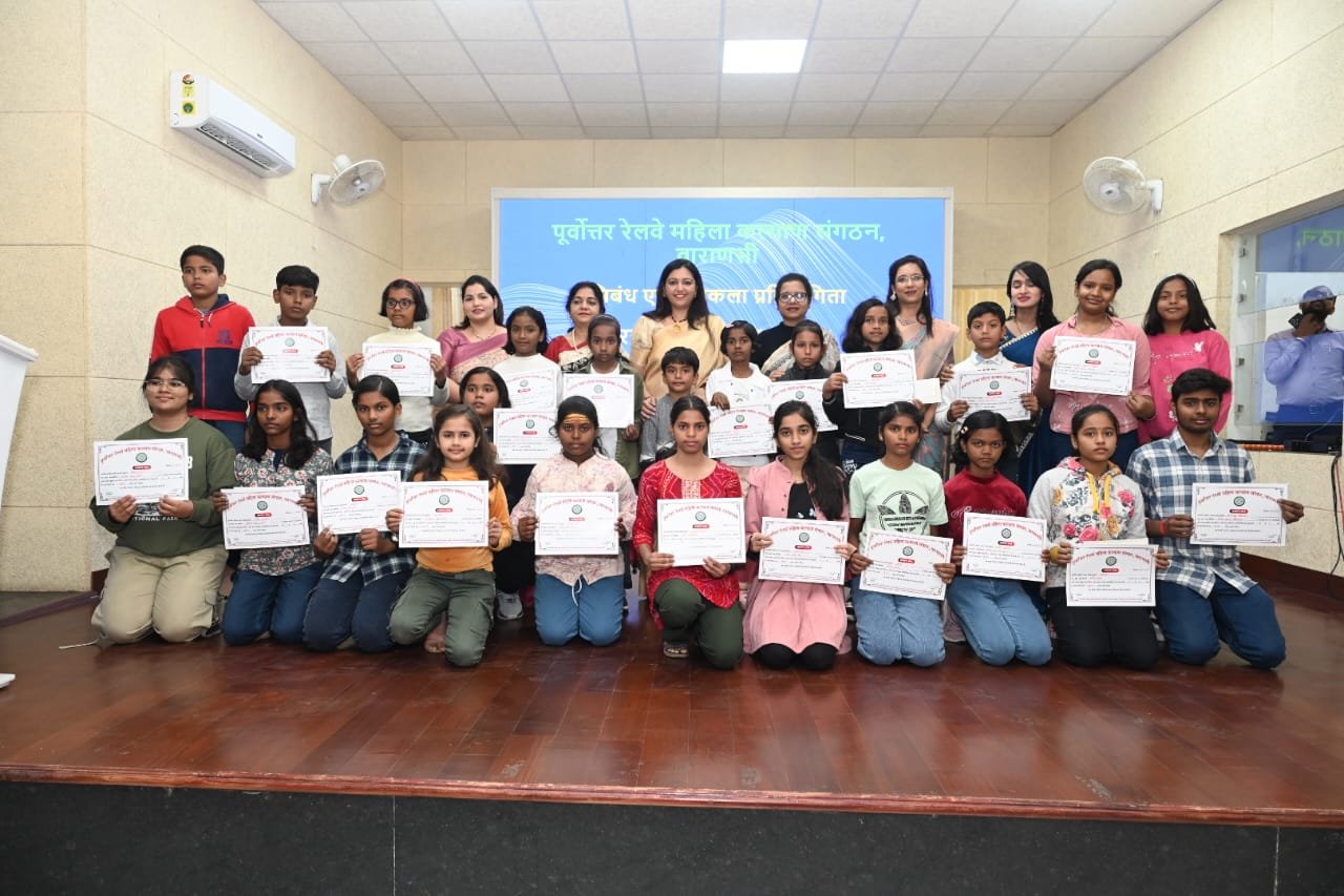 श्रीमती सरिता केसरवानी सहित पुरुस्कार प्राप्त करने वाले प्रतिभागी एवं उनके परिजन उपस्थित थे। निबंध एवं ड्राइंग प्रतियोगिता में वाराणसी मंडल के प्रयागराज रामबाग,मऊ,बलिया,सीवान,गोरखपुर,तथा छपरा स्टेशनों के तीनों ग्रुपों (6-9,9-12,12-15 आयु संवर्ग ) में कुल 650 से अधिक प्रतिभागियों ने भाग लिया था जिसमें तीनों ग्रुप से 30 सफल प्रतिभागियों को मंडल महिला कल्याण संगठन के अध्यक्षा एवं सदस्यों द्वारा नगद एवं प्रशस्ति पत्र देकर सम्मानित गया। एवं सभी प्रतिभागियों को मंडल कल्याण संगठन के टीम द्वारा जलपान तथा लंच पैकेट प्रदान किया गया।