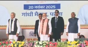 अशोक झा/ पटना : बिहार की राजनीति में एक और इतिहास रचते हुए जनता दल (यूनाइटेड) के प्रमुख नीतीश कुमार ने गुरुवार(20 नवंबर) को बिहार के मुख्यमंत्री पद की शपथ 10वीं बार ग्रहण की। इस मंच से पीएम मोदी ने गमछा लहराकर बिहारवासियों को बधाई दी आभार व्यक्त किया। पटना के प्रतिष्ठित गांधी मैदान में आयोजित इस समारोह में प्रधानमंत्री नरेंद्र मोदी भी मौजूद रहे। खास बात यह रही कि वर्ष 2020 में आयोजित शपथ ग्रहण में पीएम मोदी शामिल नहीं हुए थे, लेकिन इस बार उनकी उपस्थिति ने राजनीतिक रूप से कई संकेत छोड़े।
