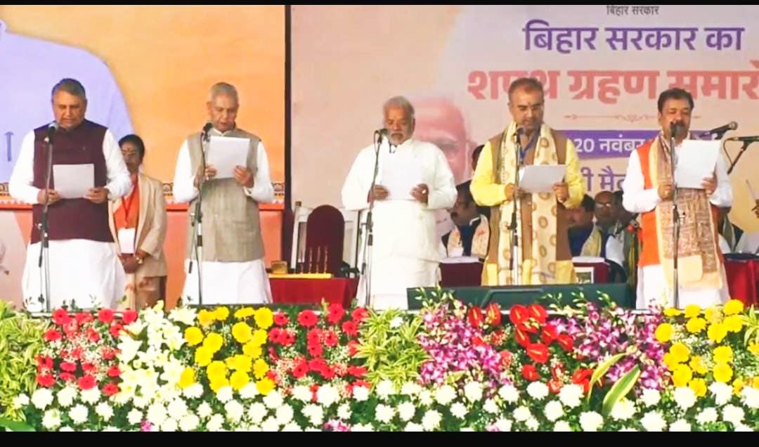 नीतीश कुमार का 10वां शपथ ग्रहण न केवल उनकी लंबी रफ्तार वाली राजनीतिक यात्रा को दर्शाता है, बल्कि यह भी बताता है कि बिहार की राजनीति में उनका प्रभाव अब भी मजबूत और निर्णायक है। शासन, प्रशासन और गठबंधन राजनीति इन तीनों क्षेत्रों में उनकी लगातार सक्रिय उपस्थिति उन्हें भारत के सबसे अनुभवी मुख्यमंत्रियों की श्रेणी में और ऊंचा स्थान दिलाती है। बिहार में सत्ता परिवर्तन के इस नए चरण के साथ, राज्य की राजनीतिक दिशा और भविष्य की नीतियों पर अब सभी की नज़रें टिकी हुई हैं।नीतीश ने कैबिनेट में अपने साथ बीजेपी, जेडीयू, एलजेपी-आर, एचएएम और आरएलएम के कुल 26 नेताओं को मंत्री बनाया है। नीतीश इससे पहले 7 बार एनडीए और 2 बार महागठबंधन सरकार के सीएम रहे हैं। एनडीए की पहले की 7 सरकारों में 1 बार जीतनराम मांझी मुख्यमंत्री रहे थे। बिहार चुनाव में एनडीए को 202 दलों के साथ दो तिहाई से ऊपर बहुमत मिला है। राजग के 202 विधायकों में भाजपा के 89, जदयू के 85, लोजपा-रामविलास के 19, हम के 5 और रालोमो के 4 एमएलए शामिल हैं। नीतीश ने कल ही संकेत दिया था कि आज के शपथ में सीमित संख्या में मंत्री बनाए जाएंगे और मकर संक्रांति के बाद यानी अगले साल मंत्रिमंडल का विस्तार किया जाएगा।नीतीश कुमार, मुख्यमंत्री- जेडीयू,सम्राट चौधरी- उप-मुख्यमंत्री- बीजेपी,विजय कुमार सिन्हा- उप-मुख्यमंत्री, बीजेपी,विजय कुमार चौधरी- मंत्री, जेडीयू,बिजेंद्र प्रसाद यादव- मंत्री, जेडीयू, श्रवण कुमार- मंत्री, जेडीयू,मंगल पांडेय- मंत्री, बीजेपी, दिलीप जायसवाल- मंत्री, बीजेपी