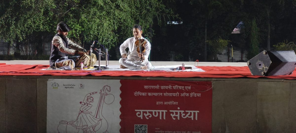 वाराणसी छावनी परिषद एवं दीपिका कल्चरल सोसायटी ऑफ इंडिया द्वारा आयोजित साप्ताहिक आयोजन कैंटोनमेंट के नेहरू पार्क में आयोजित की गई भारत पर्यटन वाराणसी पर्यटन मंत्रालय भारत सरकार के सहयोग से वरुणा संध्या मैं आज वायलिन वादक अर्जुन कुमार ने राग यमन तीन ताल व पारंपरिक धुन की प्रस्तुति दी एवं अंत में भजन** श्री कृष्ण गोविंद हरे मुरारी है नाथ नारायण वासुदेव** कर दिया किया तबले पर अभिनंदन मिश्रा ने साथ दिया कलाकारों को प्रमाण पत्र दीपिका कल्चरल सोसायटी ऑफ इंडिया के अध्यक्ष अजय गुप्ता एवं अहमदाबाद के प्रमुक समाजसेवी सुधांशुजी ने संयुक्त रूप से प्रदान किया एवं संचालन तनुज कुमार वर्मा ने एवं धन्यवाद ज्ञापन परिषद के अभियंता सचिन कुमार श्रीवास्तव ने ज्ञापित किया आयोजन में युगल किशोर यज्ञदत्त सहित काफी संख्या में कला प्रेमी उपस्थित रहे
