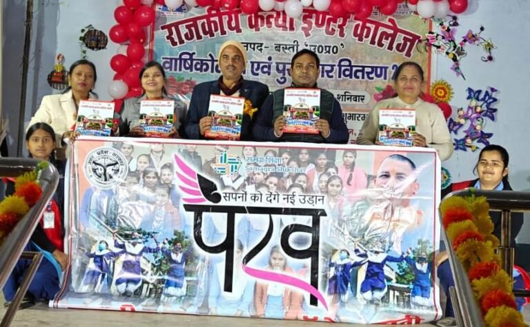 उप्र बस्ती जिले में राजकीय कन्या इंटर कॉलेज के सभागार में शनिवार को वार्षिकोत्सव एवं प्रतिभा सम्मान समारोह का आयोजन किया गया। कार्यक्रम का शुभारंभ जिला विद्यालय निरीक्षक संजय सिंह, राजकीय माध्यमिक विद्यालय खलीलपट्टी के प्रधानाध्यापक उदयभान सिंह, राजकीय उच्चतर माध्यमिक विद्यालय खखुआ की प्रधानाध्यापिका संधिला चौधरी एवं राजकीय कन्या इंटर कॉलेज की प्रधानाचार्या डॉ. अपर्णा भारद्वाज द्वारा मां सरस्वती की प्रतिमा के समक्ष दीप प्रज्वलन एवं माल्यार्पण कर किया गया। प्रधानाचार्या डॉ. अपर्णा भारद्वाज ने सभी अतिथियों का पुष्पगुच्छ, शॉल एवं स्मृति चिन्ह भेंट कर स्वागत किया तथा विद्यालय की वार्षिक उपलब्धियों पर विस्तार से प्रकाश डाला। इस अवसर पर उत्तर प्रदेश सरकार की प्रमुख योजना ‘पंख’ के अंतर्गत पंख पुस्तिका का विमोचन किया गया तथा नवनिर्मित पुस्तकालय का भी उद्घाटन किया गया। प्रतिभा सम्मान समारोह के अंतर्गत सत्र 2025 की हाईस्कूल एवं इंटरमीडिएट परीक्षा में विद्यालय में प्रथम, द्वितीय एवं तृतीय स्थान प्राप्त करने वाली छात्राओं को सम्मानित किया गया। इसके साथ ही निबंध, वाद-विवाद, नृत्य, गायन एवं खेलकूद प्रतियोगिताओं में उत्कृष्ट प्रदर्शन करने वाली छात्राओं को भी पुरस्कार दिए गए। विज्ञान, गणित, कला, गाइड तथा राष्ट्रीय सेवा योजना के क्षेत्र में विशेष योगदान देने वाली छात्राओं को मोमेंटो देकर सम्मानित किया गया। कार्यक्रम के दौरान छात्राओं द्वारा प्रस्तुत सांस्कृतिक कार्यक्रमों ने उपस्थित अतिथियों और अभिभावकों का मन मोह लिया। कार्यक्रम का समापन प्रधानाचार्या डॉ. अपर्णा भारद्वाज द्वारा आभार व्यक्त करने के साथ हुआ।