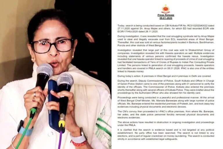 ममता बनर्जी ने जैन के लाउडन स्ट्रीट स्थित आवास से बाहर निकलने के बाद ये आरोप लगाए, जहां गुरुवार सुबह से ही तलाश अभियान जारी है. प्रतीक जैन के नेतृत्व वाली फर्म ‘इंडियन पॉलिटिकल एक्शन कमेटी’ (आई-पीएसी) के कार्यालय में भी तलाश अभियान चलाया जा रहा है। ममता बनर्जी ने दावा किया कि प्रवर्तन निदेशालय सत्तारूढ़ पार्टी की आंतरिक रणनीति, उम्मीदवारों की सूचियां और गोपनीय डिजिटल सामग्री तक पहुंचने की कोशिश कर रहा था। उन्होंने कहा कि ऐसी जानकारी का किसी भी वित्तीय जांच से कोई संबंध नहीं है। ममता बनर्जी ने टीएमसी के आईटी प्रमुख के आवास पर ईडी की छापेमारी पर कहा कि क्या केंद्रीय गृह मंत्री का काम राजनीतिक दलों के आईटी प्रमुखों के आवासों पर छापा मारना है। सीएम ने कहा कि क्या पार्टी की हार्ड डिस्क और उम्मीदवारों की सूची इकट्ठा करना ईडी और अमित शाह का काम है?… ये निकम्मे गृह मंत्री, जो देश की रक्षा नहीं कर सकते, मेरी पार्टी के सारे दस्तावेज़ ले जा रहे हैं।